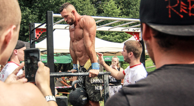 - Shyby na hrazdě + 32 kg MUŽI na opasku (shyby z propnutých rukou, na počítání rozhodčích, bradou nad hrazdu). / Men Pull ups + 32kg on belt (pull ups from dead hands position, on counting judges-chin up over bar).